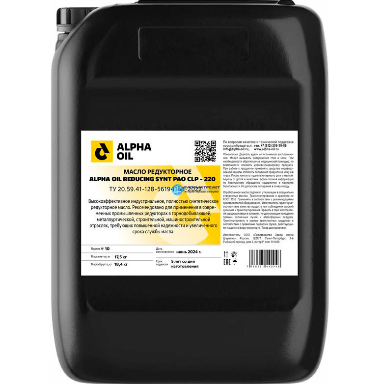 масло редукторное ALPHA OIL REDUCING SYNT PAO CLP -220, канистра 20 л. 00-00002038 ALPHA OIL