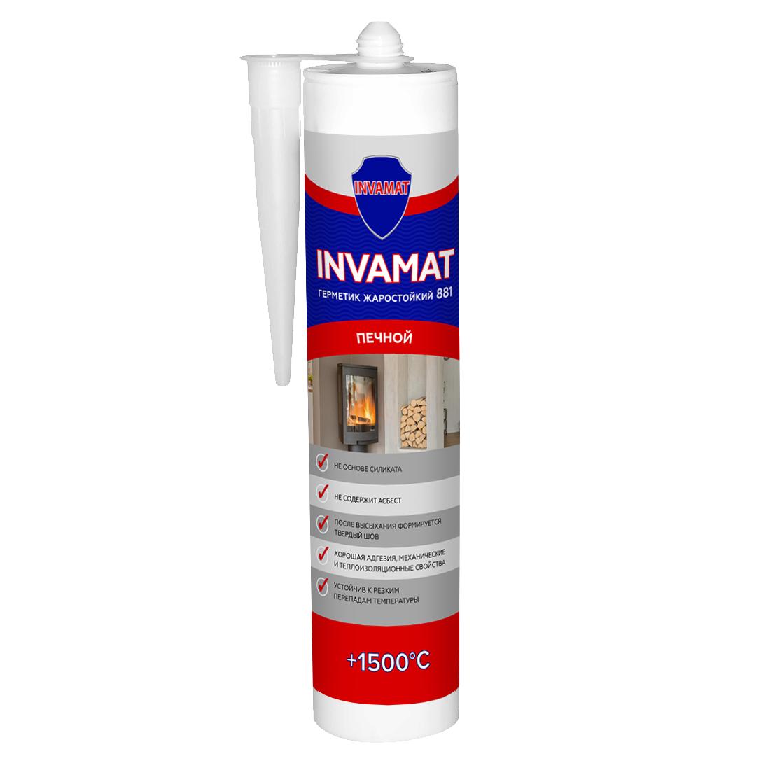 Герметик жаростойкий печной 881 290 мл черный, код 1153, производитель INVAMAT