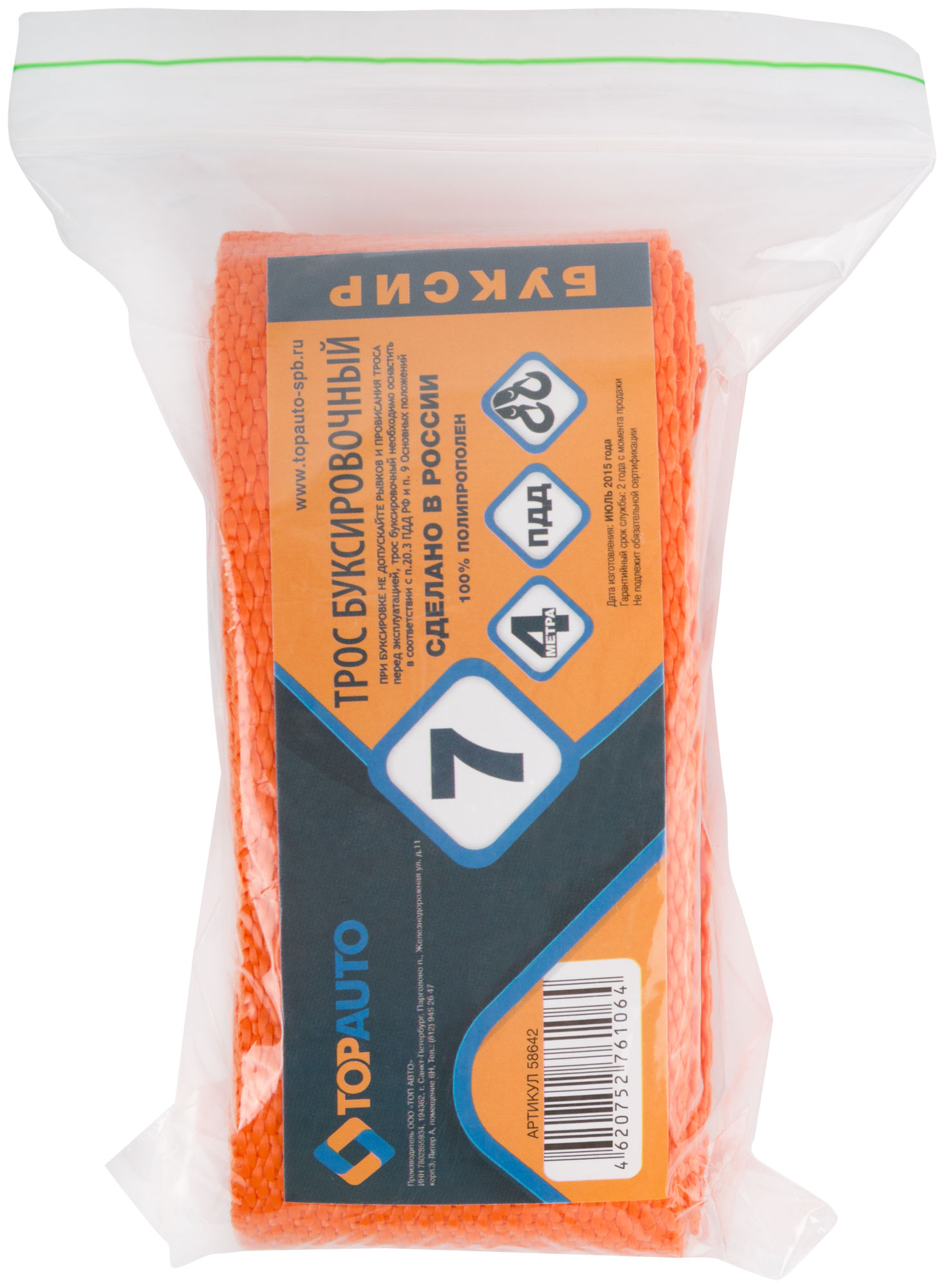 буксировочный ''Буксир'' 7000 кг, м, 2 крюка (пакет), код 64677, производитель РОС