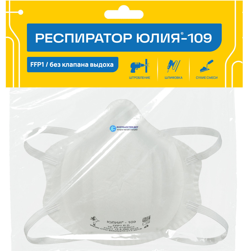 Юлия 109 FFP1 NR D без клапана (индивидуальная упаковка), код 20489, производитель Респираторный комплекс