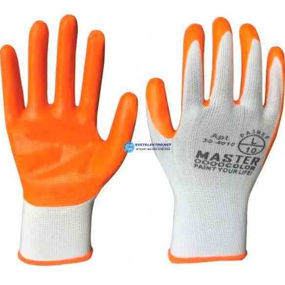 Перчатки белые, полиэстер с обливкой из нитрила (кислото-щелочно стойкие, водоотталкивающие), р-р М/8, код 30-4011, производитель FIT