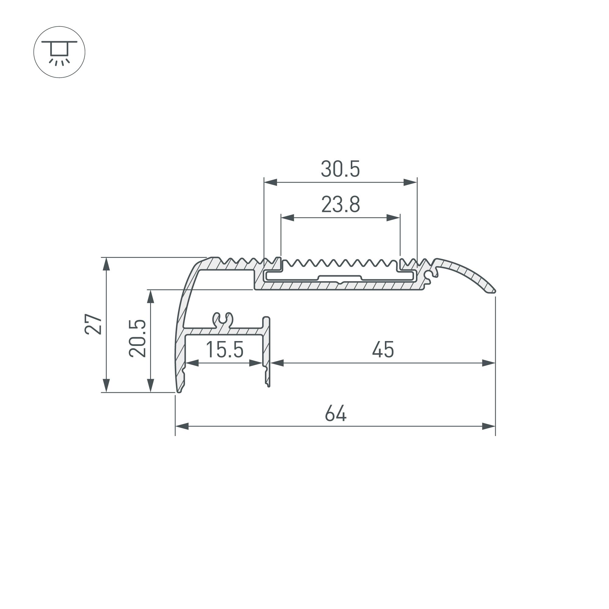 | Тип изделия: | Профиль для светодиодной ленты: |