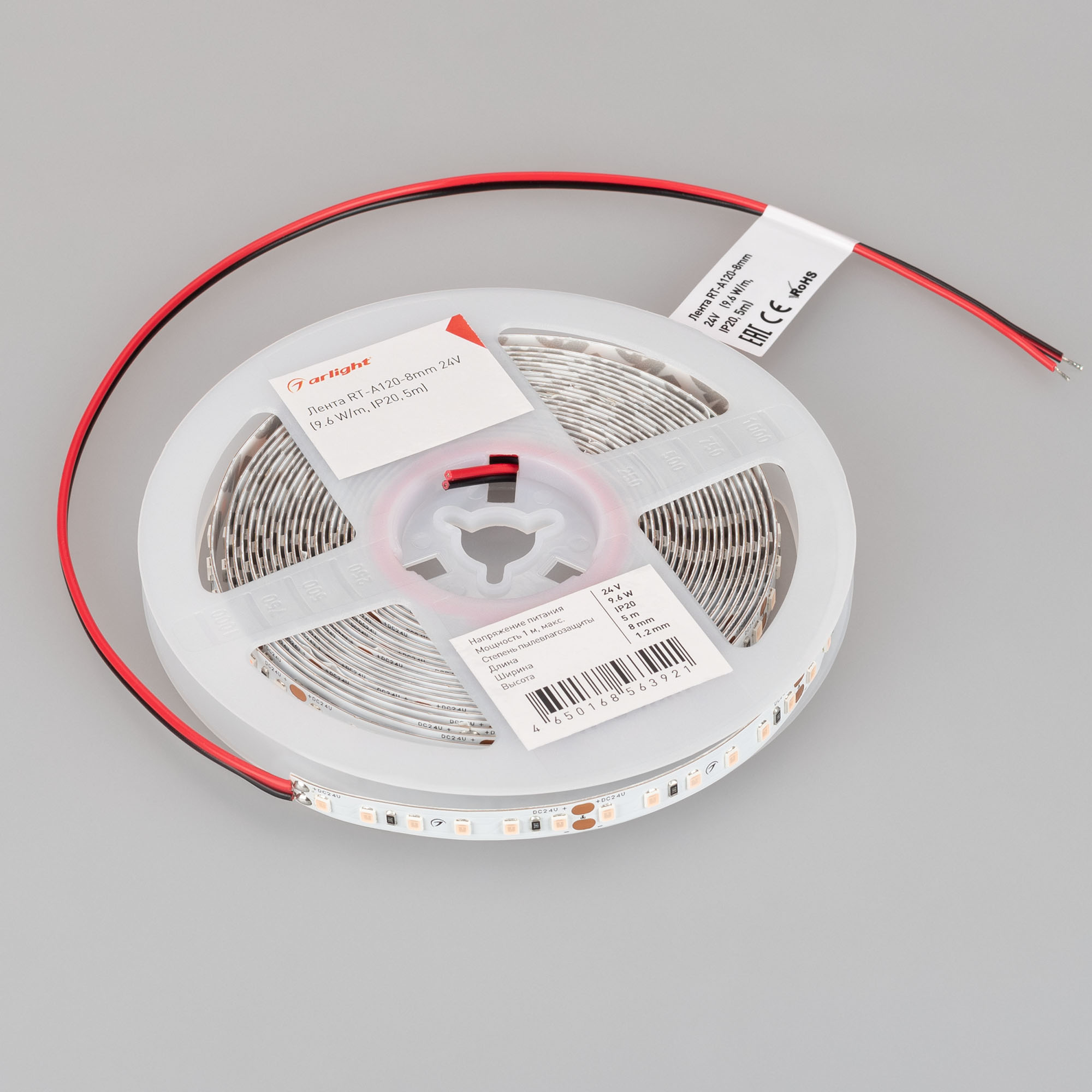 Лента светодиодная RT-A120-8mm 24V Peach Fuzz (9.6 W/m, IP20, 5m), код 047719, производитель Arlight