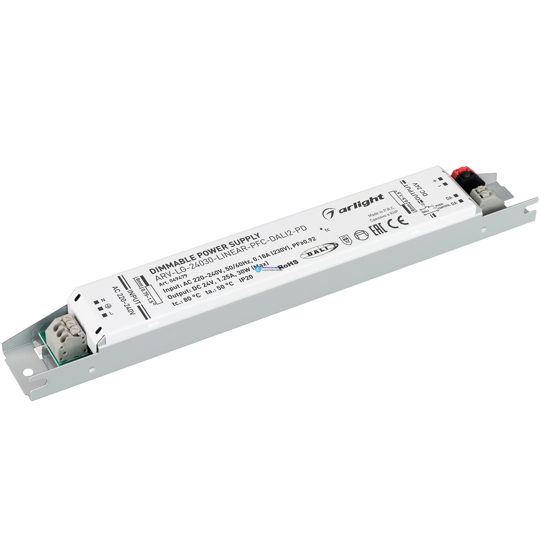 Блок питания ARV-LG-24030-LINEAR-PFC-DALI2-PD (24V, 1.25A, 30W), код 049479, производитель Arlight
