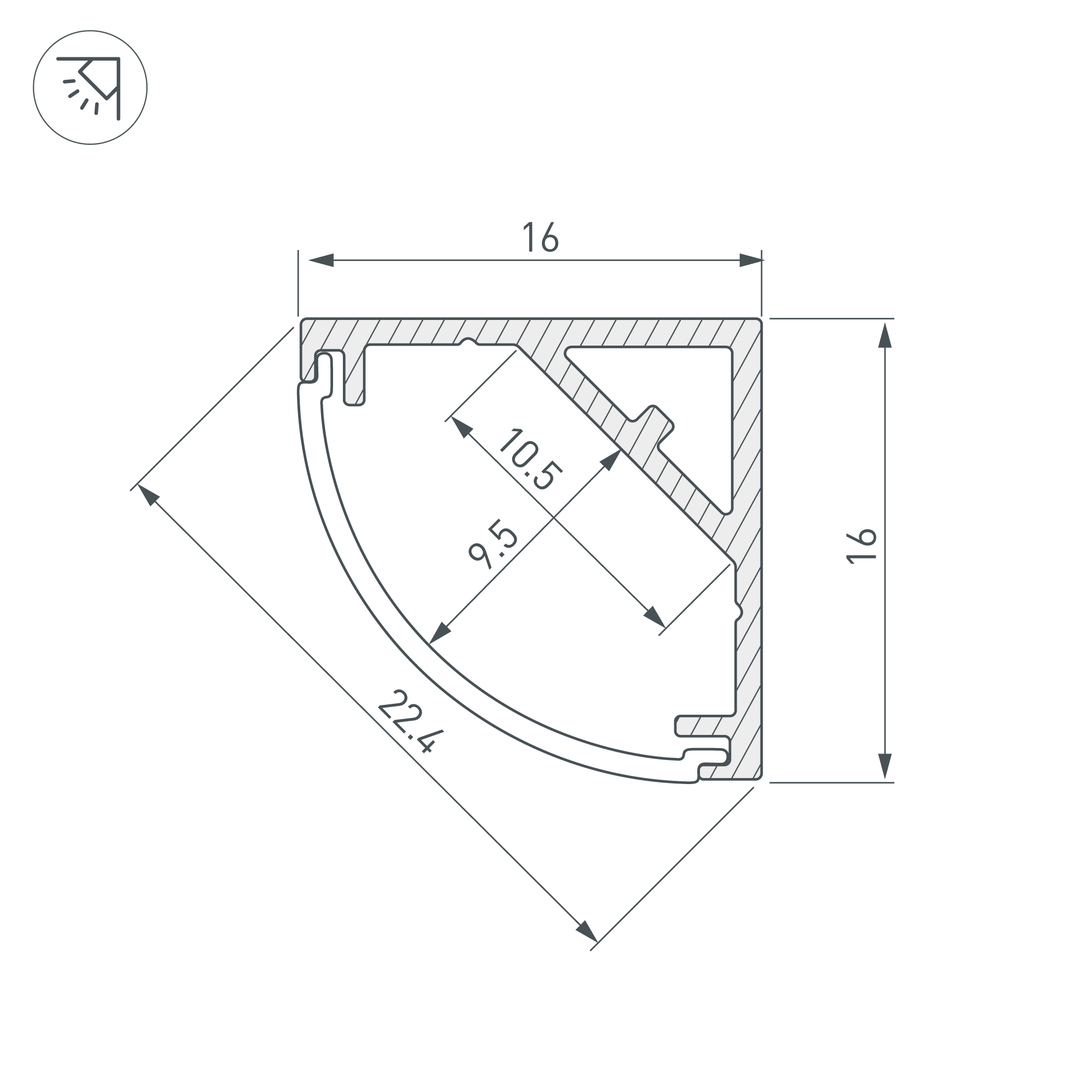 Профиль SL-KANT-H16-S10-2000 ANOD Алюминий, код 053562, производитель Arlight