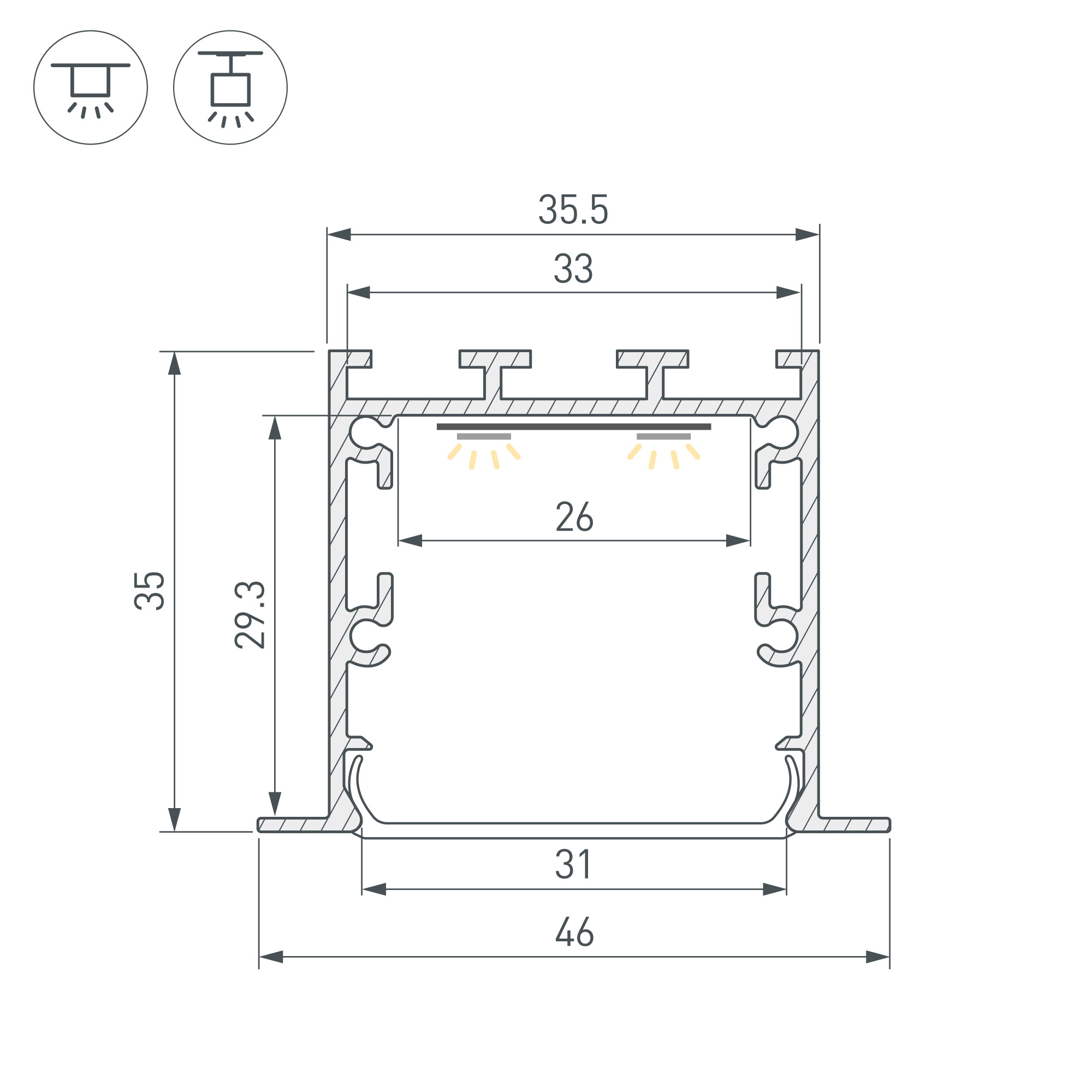 | Тип изделия: | Профиль для светодиодной ленты: |