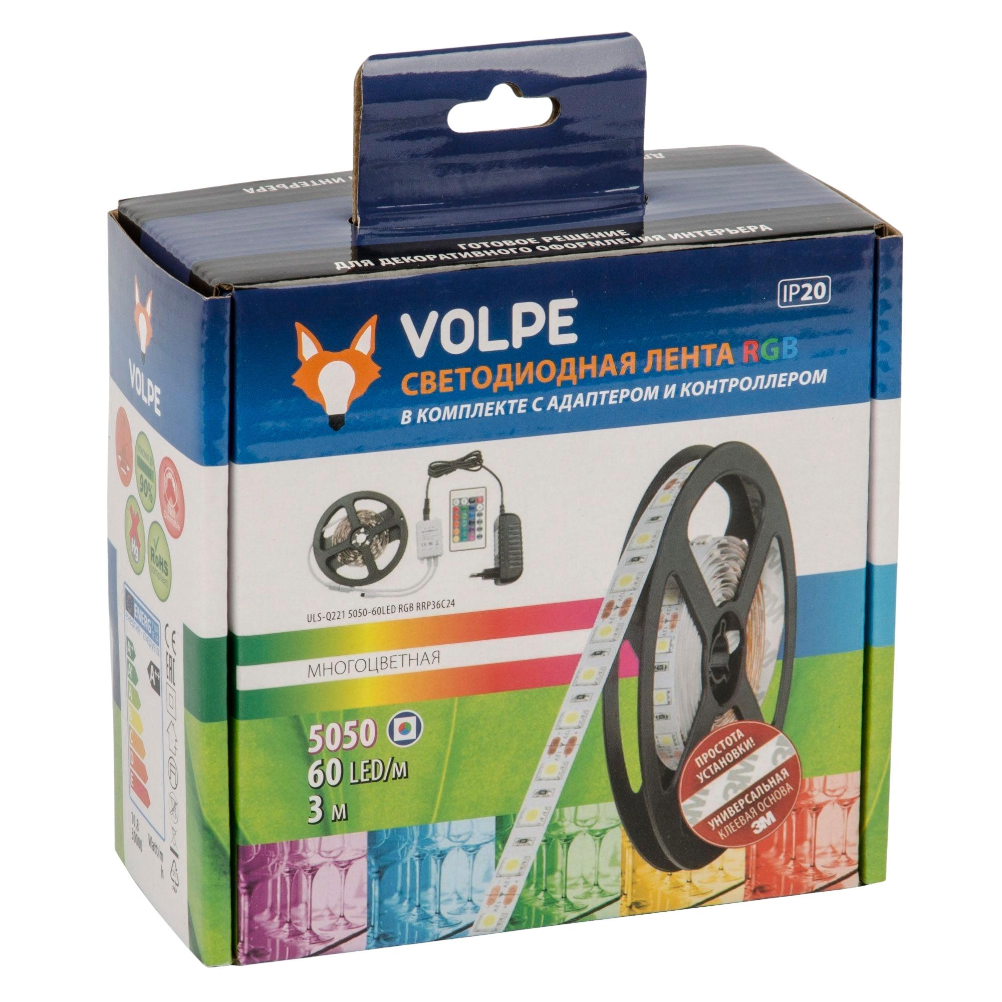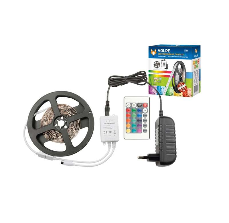 Комплект светодиодной ленты ULS-Q221 5050-60LED-m-IP20-3M-RGB RRP36C24 3м IP20 RGB Адаптер 36Вт Контроллер с пультом TM Volpe, код 10774, производитель Uniel