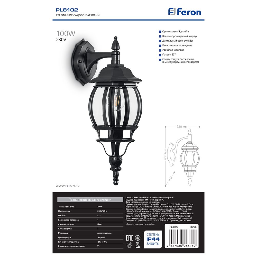 Светильник НБУ-100w вниз Е27 IP44 черный 11098 FERON