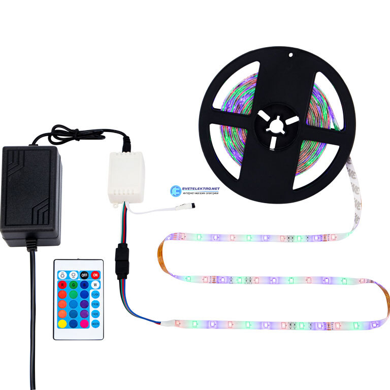 Комплект светодиодной ленты 5 м с блоком питания и RGB контроллером IP65, свечение RGB LAMPER 142-402 REXANT