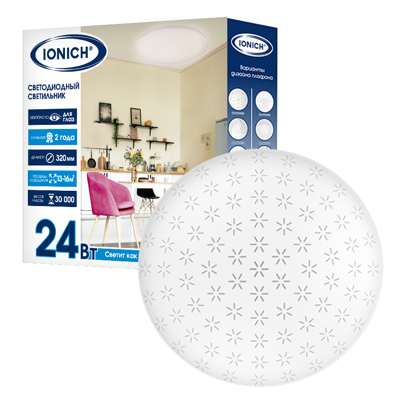 | Сфера применения: | Светодиодные декоративные светильники TM IONICH предназначены для внутреннего освещения административных, общественных и жилых помещений, ресторанов, отелей и кафе и рассчитаны на переменное напряжение 220В, 50 Гц.: |