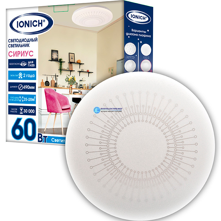 Светильник светодиодный ДВО серия 2160 Сириус 60вт 4200 Лм 230 В 6500 К 450 мм IP20 1743 IONICH