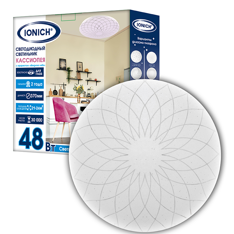 Светильник светодиодный ДВО серия 2217 Кассиопея эффект Звездное небо 48вт 3300 Лм 230 В 6500 К 350 мм IP20, код 1746, производитель IONICH
