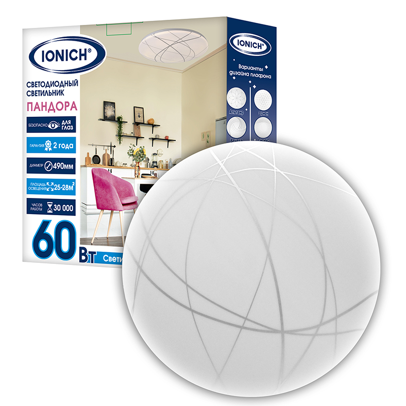 Светильник светодиодный ДВО с ерия 2220 Пандора 60вт 4200 Лм 230 В 6500 К 4 50 мм IP20, код 1765, производитель IONICH