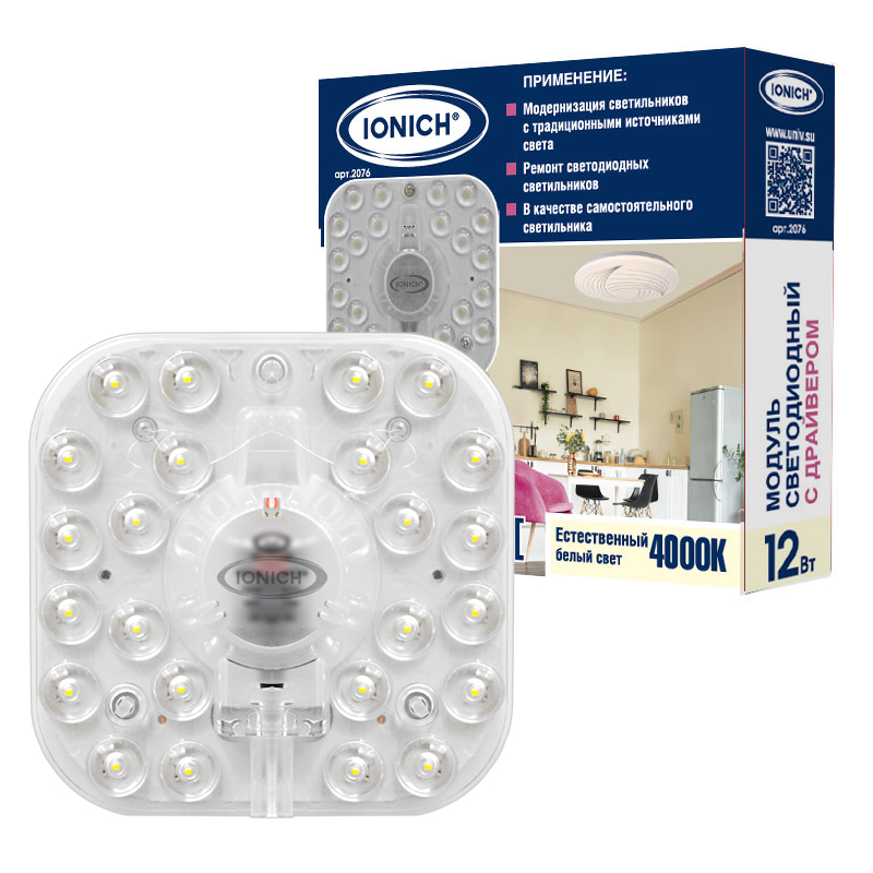 Модуль светодиодный для декоративных Светильников 12вт 960Лм 230В 4000К IP20, код 2076, производитель IONICH