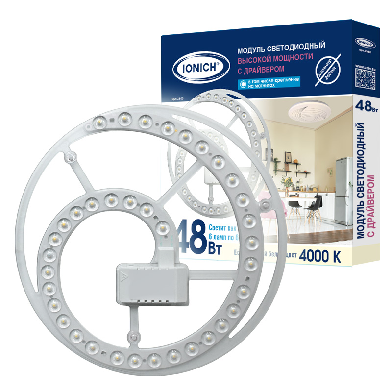 Модуль светодиодный высокой мощности для декоративных светильников IONICH 48Вт 4800Лм 230В 4000К 260мм IP20, код 2080, производитель UNIVersal