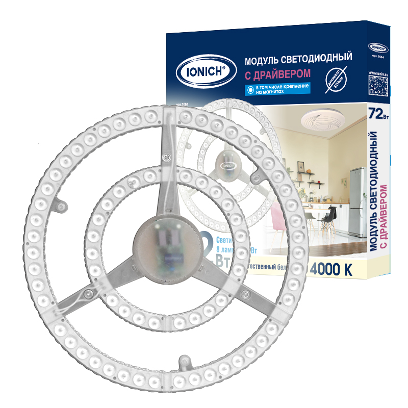 Модуль светодиодный высокой мощности для декоративных светильников IONICH 72Вт 7000Лм 230В 4000К 320мм IP20, код 2084, производитель Союз