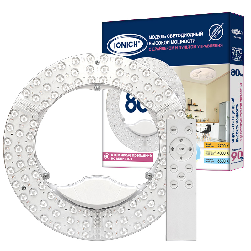 Модуль ветодиодный выокой мощноти пультом ДУ для декоративных IONICH 80Вт 230В 2700-6500К 320мм диммируемый IP20, код 2088, производитель Союз