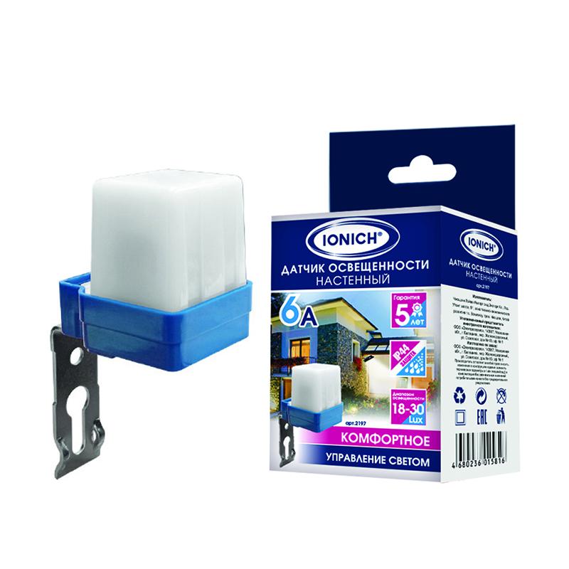 Датчик освещенности настенный 6А 8-30 Lux белый, код 2197, производитель IONICH