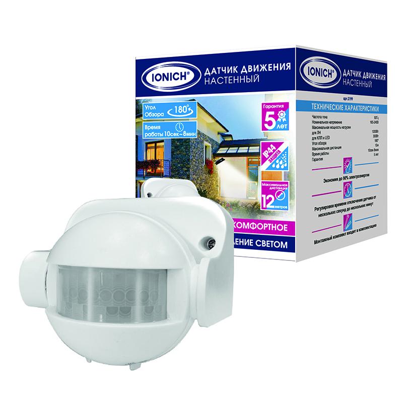 Датчик движения настенный 12м 1200Вт 8мин белый 2199 IONICH