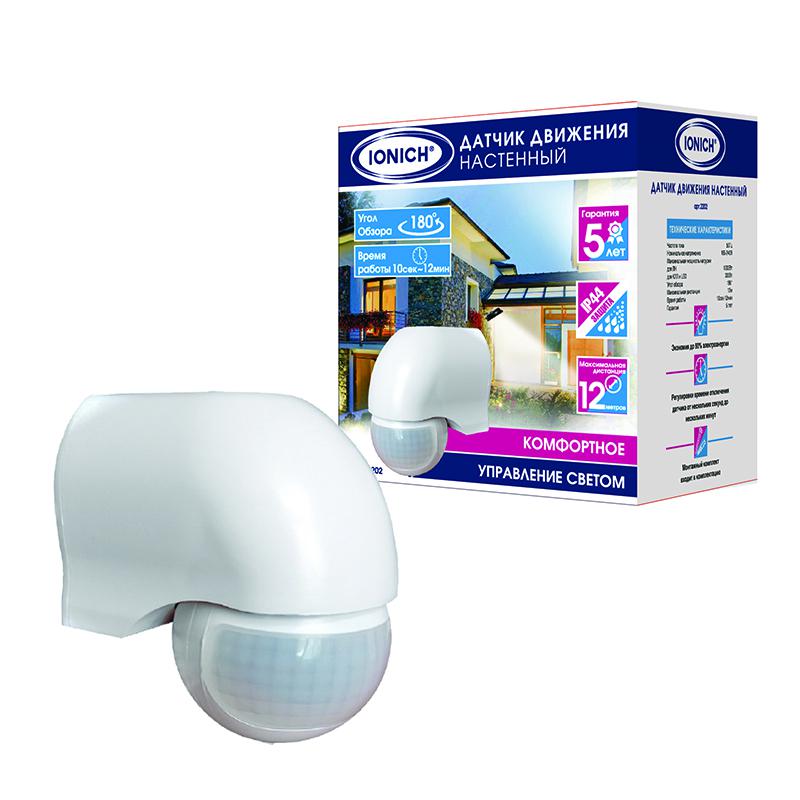 Датчик движения настенный 12м 1200Вт 12мин белый 2202 IONICH