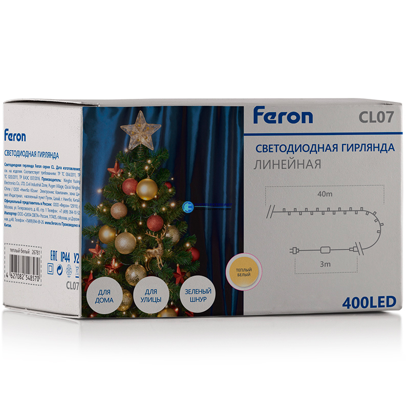 Гирлянда линейная LED 2700K 40м IP44, код 26781, производитель FERON