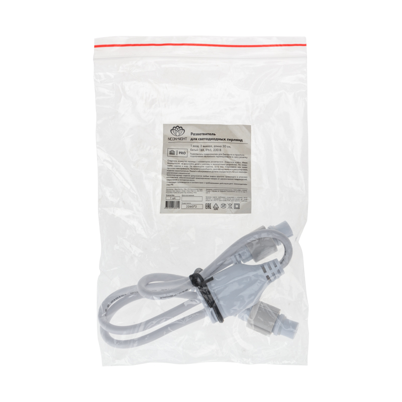 Разветвитель -Y для уличных гирлянд Professional ( вход, 2 выхода) белый ПВХ, код 315-404, производитель Neon-Night