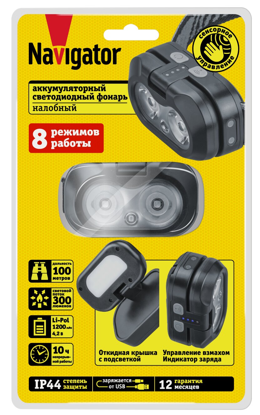 Фонарь светодиодный NPT-H46-ACCU 10 Вт LED налобный аккумуляторный, код 95562, производитель Navigator