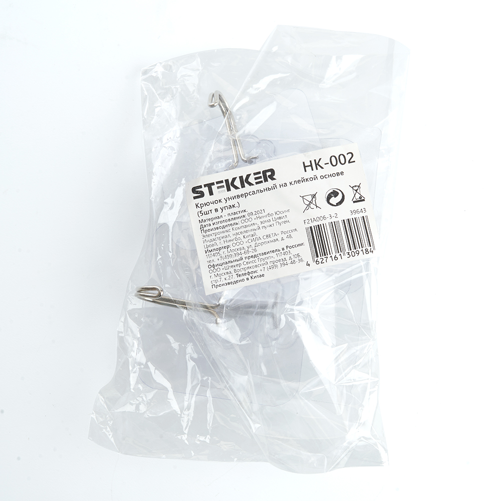 Крючок универсальный на клейкой основе (5шт в упак), HK-002, код 39643, производитель FERON