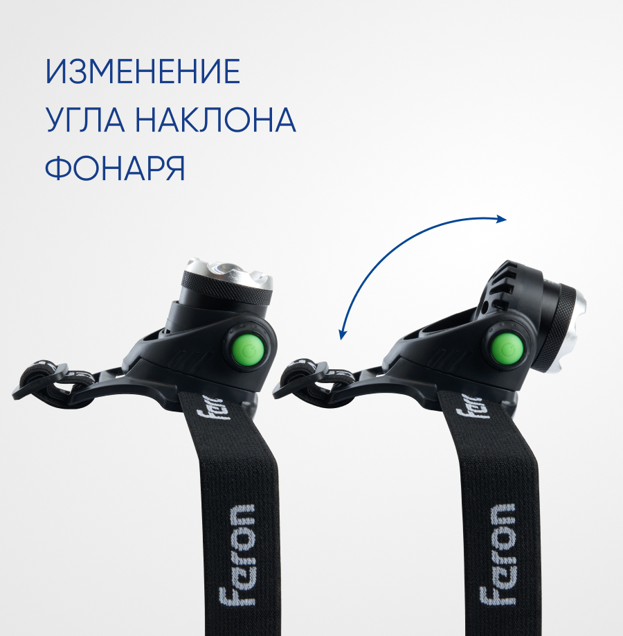 Фонарь светодиодный налобный аккумуляторный ZOOM 5w 2х18650 IP44 пластик алюминий, код 41709, производитель FERON