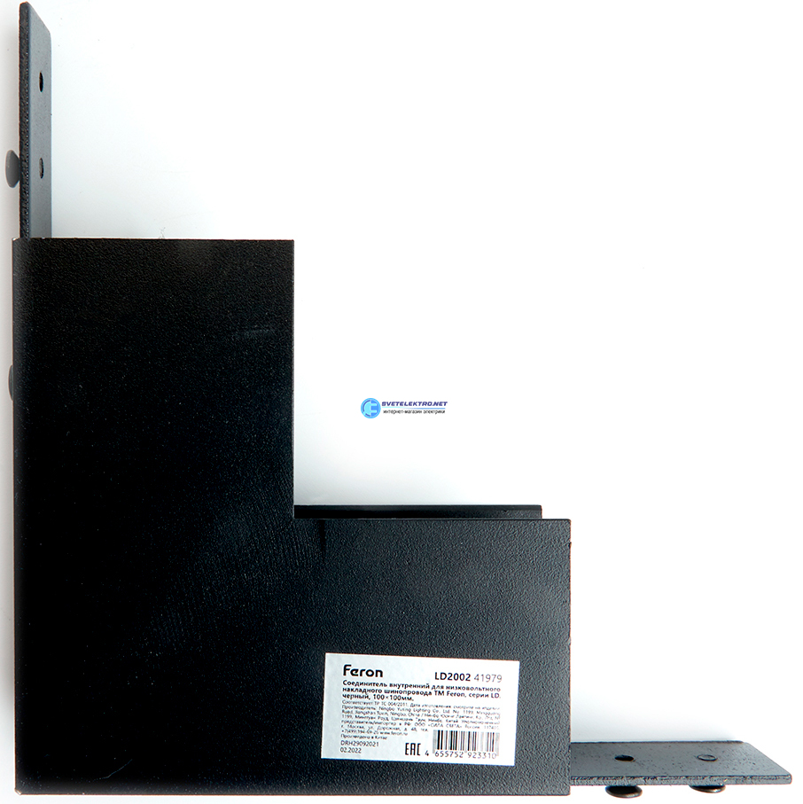 Соединитель угловой внутренний черный для низковольтного накладного шинопровода, код 41979, производитель FERON