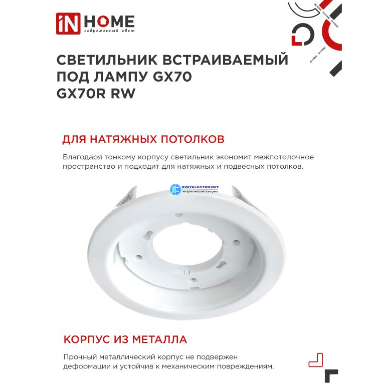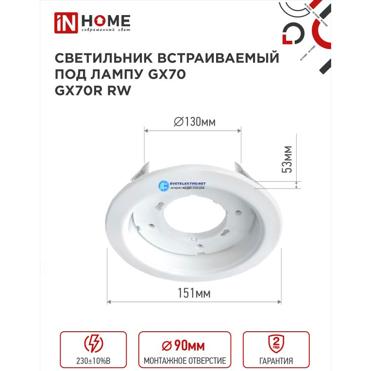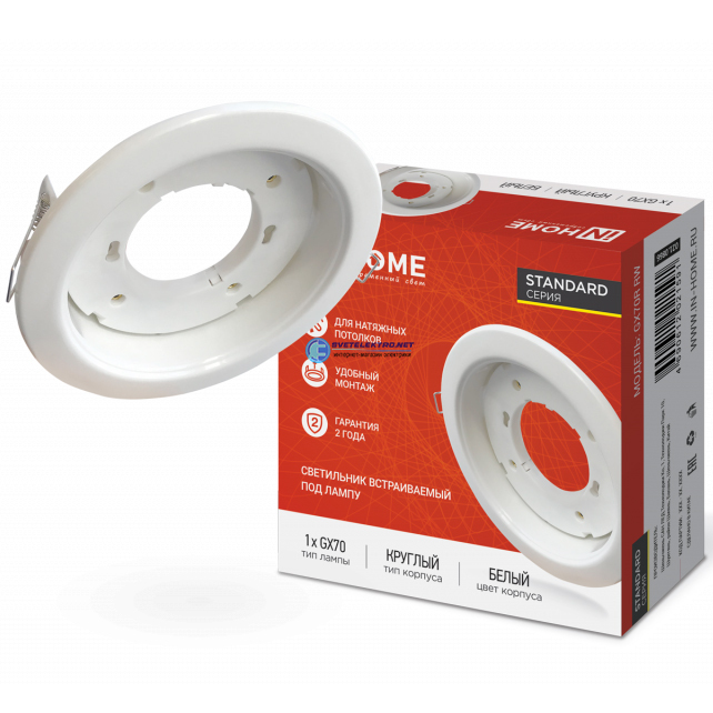 Светильник встраиваемый GX70R RW металл под лампу GX70 белый IN HOME 4690612021591 IN HOME