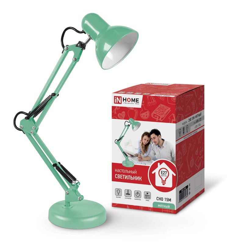 Светильник настольный под лампу на основании + струбцина СНО 15М-E27 230В МЯТНЫЙ, код 4690612035864, производитель IN HOME