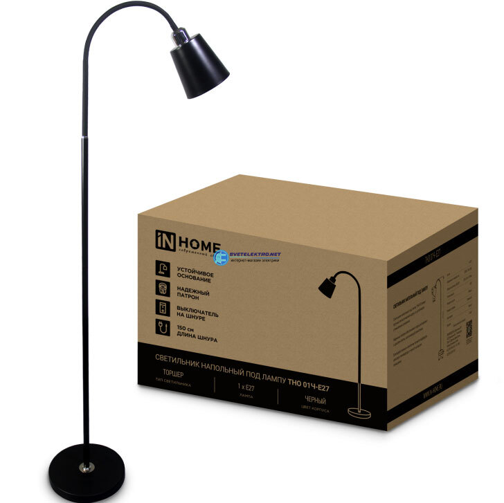 Светильник напольный под лампу ТНО 01-E27Ч 230В черный плафон, черный корпус IN HOME 4690612042657 IN HOME