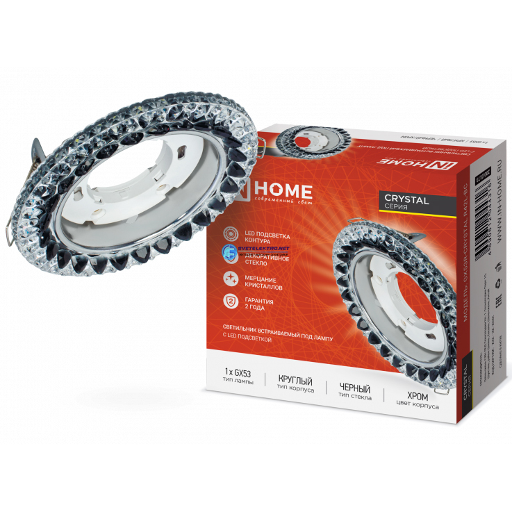 Светильник встраиваемый GX53R-crystal R42L-BC с подсветкой 4К под лампу GX53 Черный/Хром IN HOME 4690612044316 IN HOME