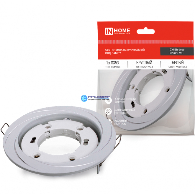 Светильник встраиваемый GX53R-deco ВИХРЬ-WH под лампу GX53 белый IN HOME 4690612044323 IN HOME