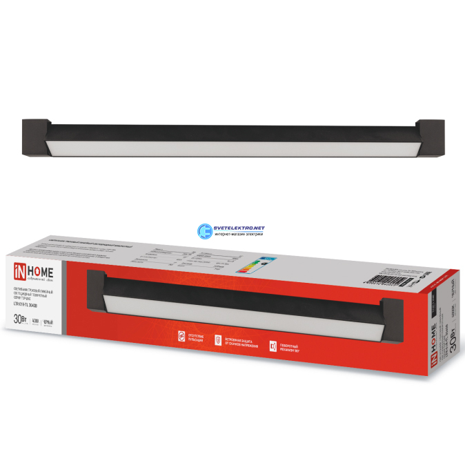 Светильник трековый линейный светодиодный поворотный LTR-01R-TL 3040B 30Вт 4000К 475мм градусов черный серии TOP-LE, код 4690612045559, производитель IN HOME
