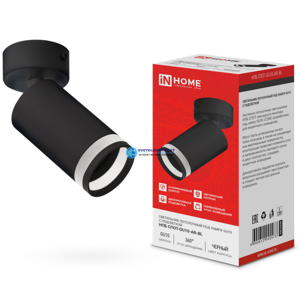 Светильник потолочный НПБ СПОТ-GU10-AR-BL под лампу GU10 55х55x100мм черный IN HOME 4690612045573 IN HOME