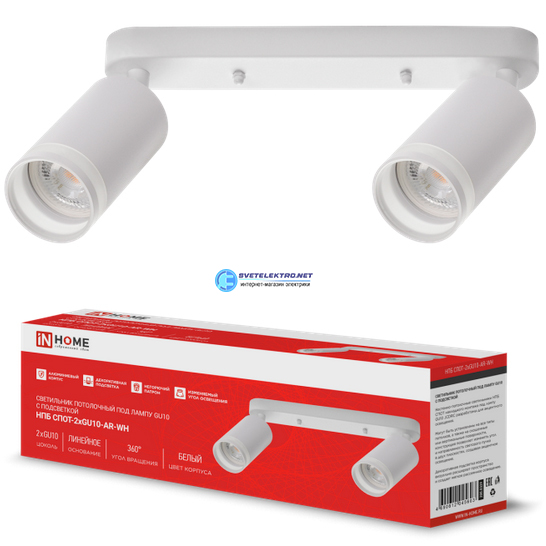 Светильник потолочный НПБ СПОТ-2xGU10-AR-WH под лампу GU10 260х55х135мм линейный белый IN HOME 4690612045603 IN HOME