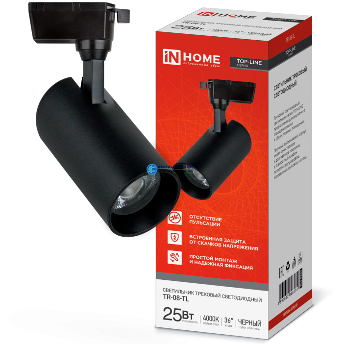 Светильник трековый светодиодный TR-08-TL 25Вт 4000К 2500Лм IP40 36 градусов черный серии TOP-LINE, код 4690612046174, производитель IN HOME