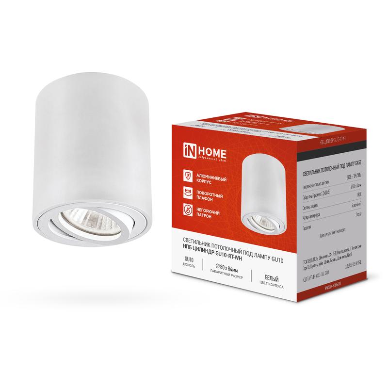 Светильник потолочный НПБ ЦИЛИНДР-GU10-RT-WH поворотный под лампу GU10 80х84мм белый IN HOME 4690612046600 IN HOME