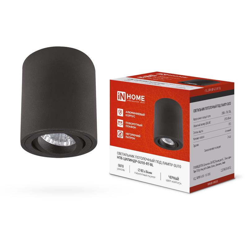 Светильник потолочный НПБ ЦИЛИНДР-GU10-RT-BL поворотный под лампу GU10 80х84мм черный IN HOME 4690612046617 IN HOME
