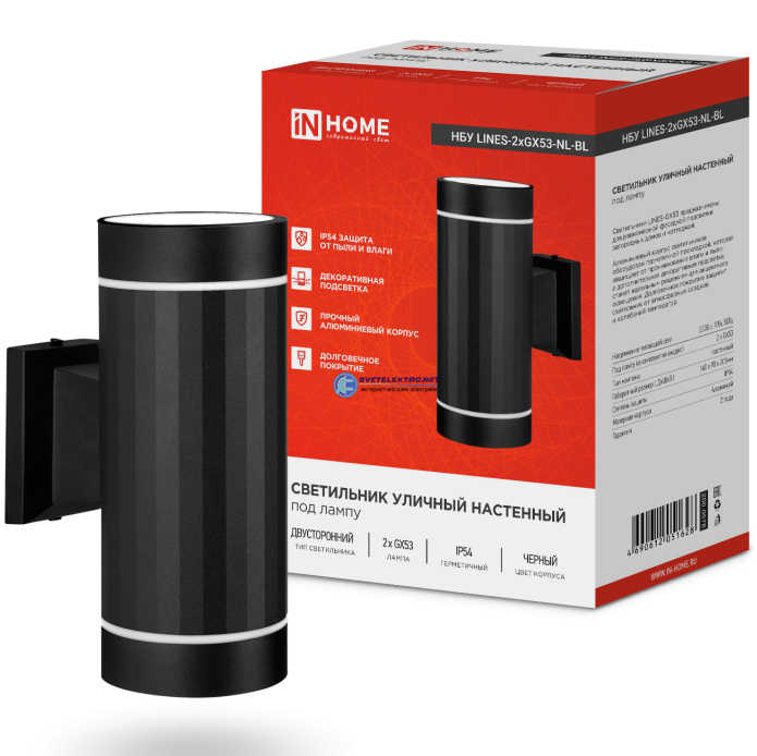 Светильник уличный настенный двусторонний НБУ LINES-2хGX53-NL-BL с подсветкой черный IP54, код 4690612051628, производитель IN HOME