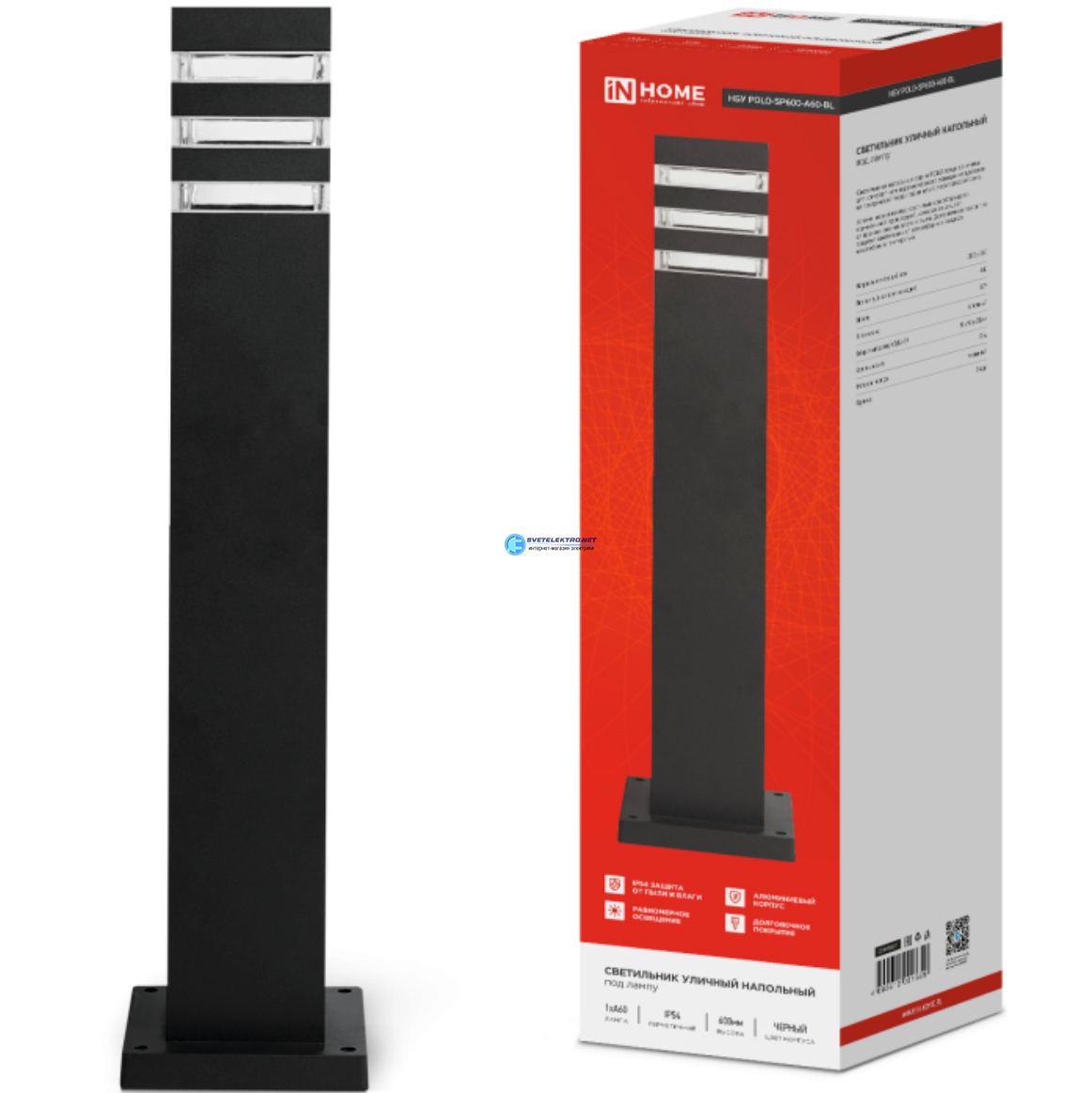 Светильник НБУ POLO-SP600-A60-BL E27 IP65 600мм уличный напольн. под лампу A60 алюм. черный, код 4690612051659, производитель IN HOME