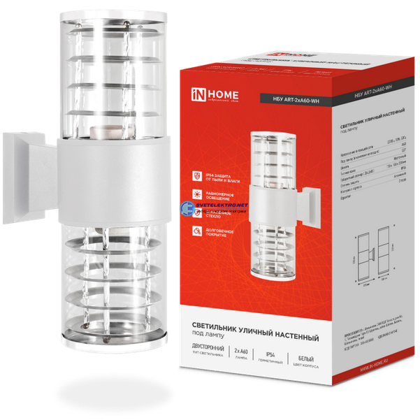 Светильник уличный настенный двусторонний НБУ ART-2хA60-WH алюминиевый белый IP54, код 4690612051819, производитель IN HOME