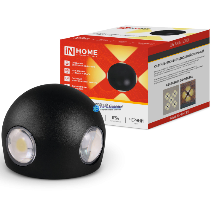 Светильник уличный светодиодный ДБУ BALL-1530BL 15Вт 3000К IP54 черный IN HOME 4690612051918 IN HOME