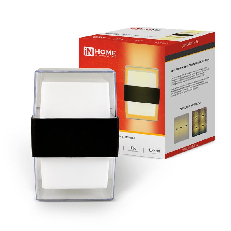 Светильник уличный светодиодный ДБУ BARREL-1530BL 15Вт 3000К IP54 черный IN HOME 4690612051949 IN HOME