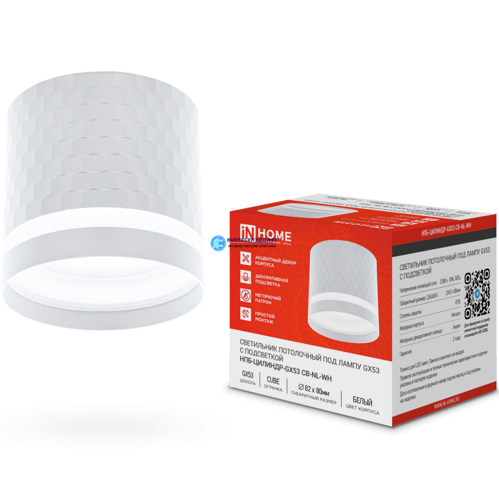 Светильник потолочный НПБ-ЦИЛИНДР-GX53 CB-NL-WH с подсветкой 82x80мм белый IN HOME 4690612052151 IN HOME