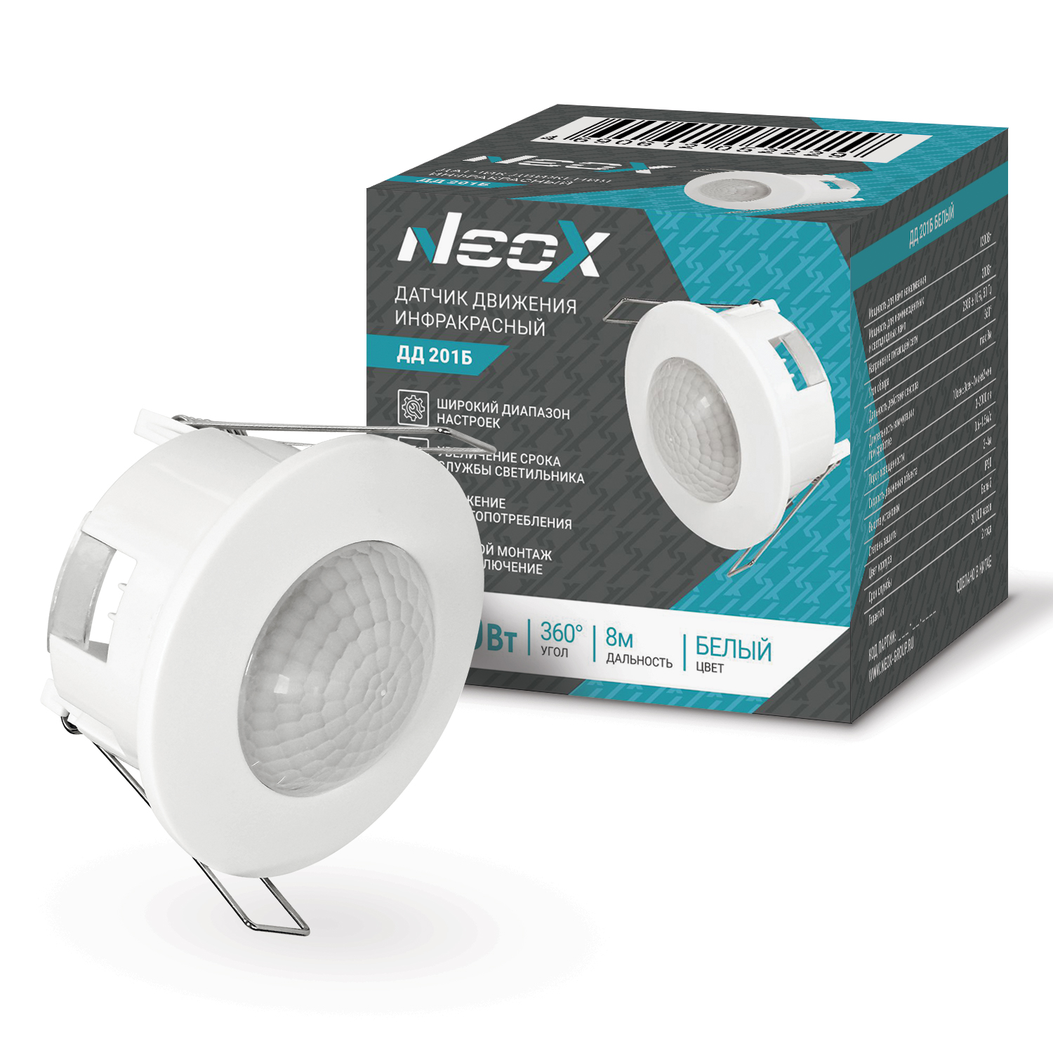 Датчик движения инфракрасный встраиваемый ДД 201Б 1200Вт 360 гр. 8м IP20 белый 4690612052229 NEOX