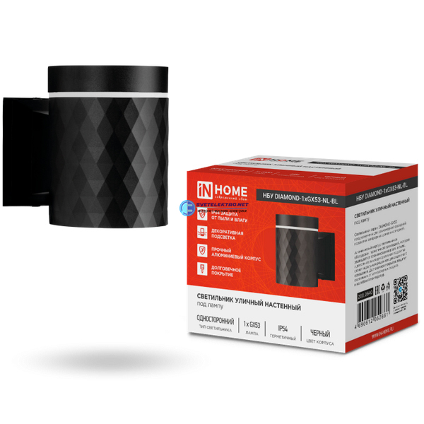 Светильник уличный настенный односторонний НБУ DIAMOND-1хGX53-NL-BL с подсветкой черный IP54, код 4690612052861, производитель IN HOME