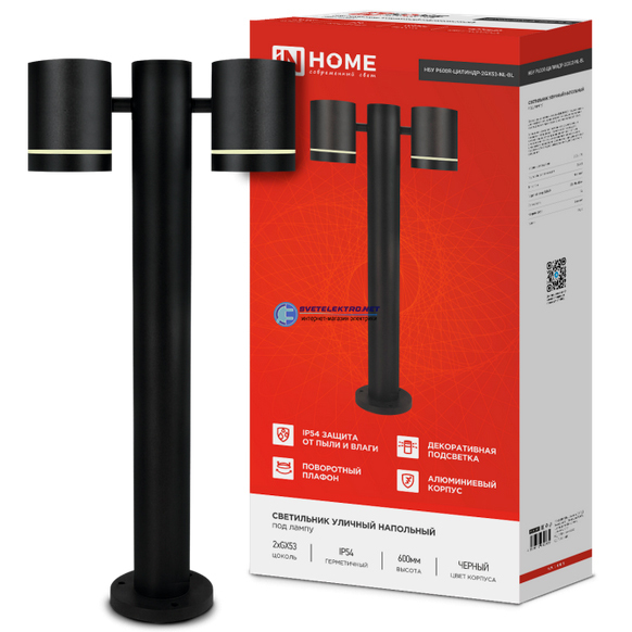 Светильник уличный напольный НБУ P600R-ЦИЛИНДР-2GX53-NL-BL с подсветкой 600мм черный IP54 IN HOME 4690612052939 IN HOME